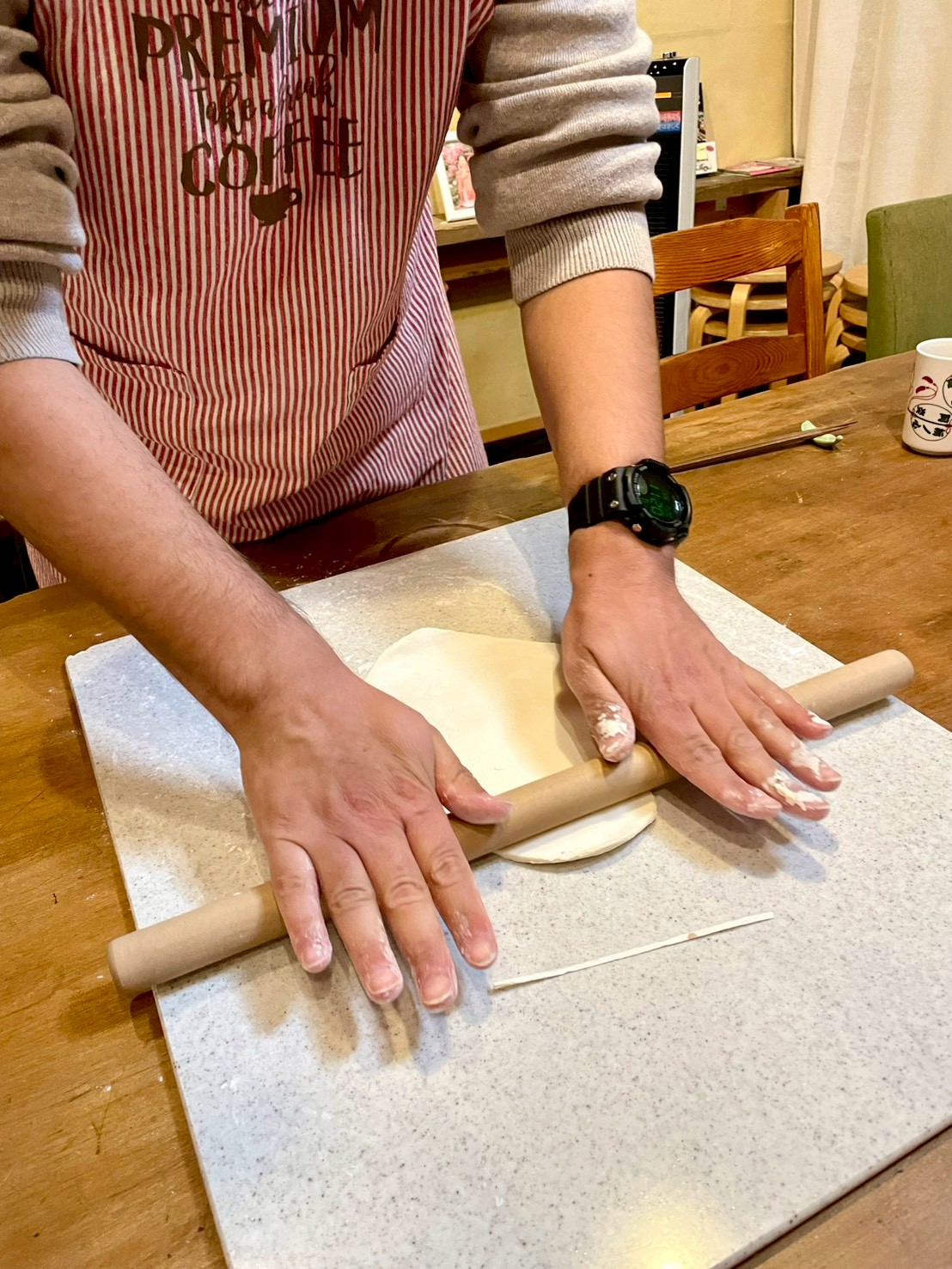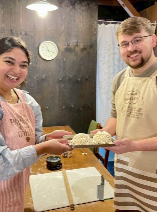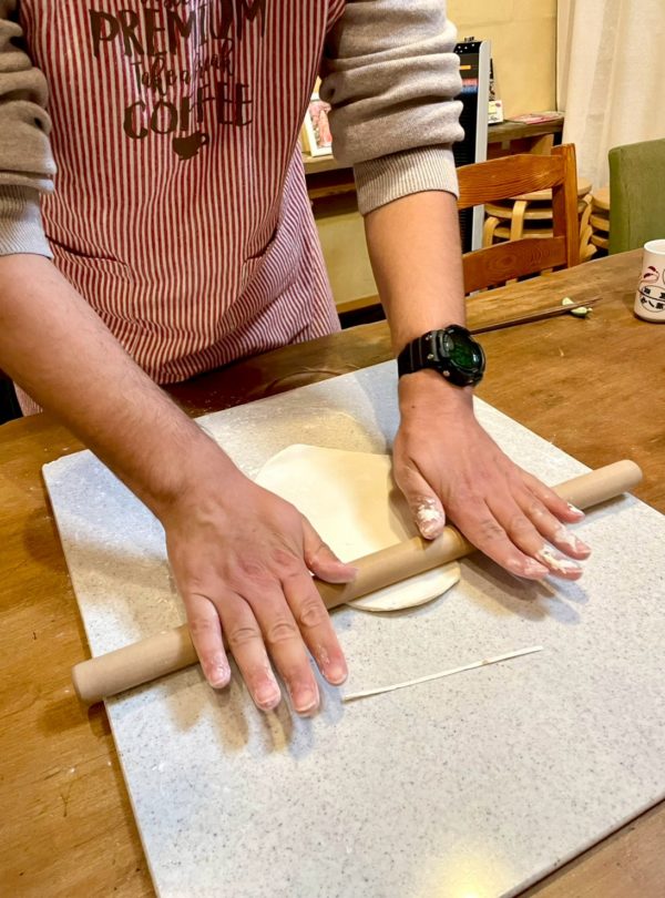The tsukudani is made from the soup stock dregs, and you’ll have fun making udon the traditional way ? by stepping on the dough!